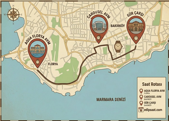 - Bakırköy Gür Çarşı – Edip Saat Tarihi Merkez Mağaza